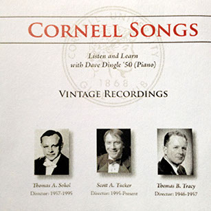 Devoted to his Alma Mater, David created a CD of the Cornell Songbook from vinyls of the 1950 Glee Club, designed to encourage the tradition of group singing among undergraduates and alumni. Distribution of the CD was facilitated at June Reunions and as a project of the Sphinx Head Society. In 2013 the CD was uploaded to the CU website so that now all could learn and enjoy the 12 key Cornell songs. It can also be found on iTunes.